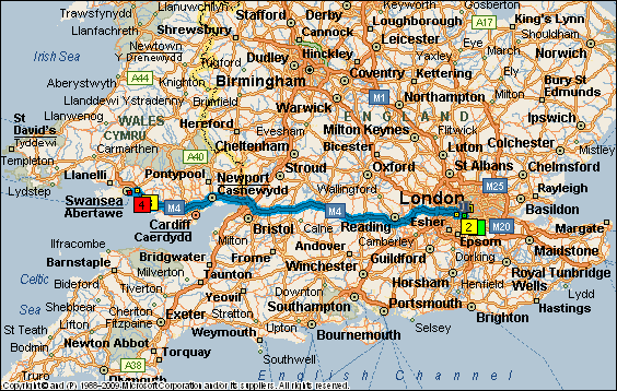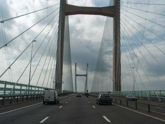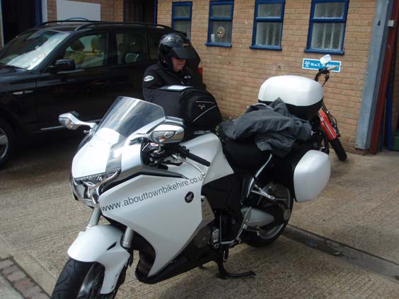 After we get the final paperwork done, we go out for the safety lecture and review of the bike. With that behind us, I realize that the VFR1200 only has about 2/3s the luggage space of a ST1100 or ST1300. Given our time crunch, I've got to sort what goes and what stays in short order - on half a brain since I'm still on Nashville time. We finally sort out how to mount the tank bag that I have brought with us and get the bike loaded. I end up leaving more than I would like to at AboutTown, but I get the most important stuff aboard. Mike is going to keep our luggage for us which I really appreciate. He does a little look see on the GPS and says - "Well, I don't know if you are going to have enough time to make the ferry or not. The GPS says 7:30 arrival time." Since we are supposed to be there an hour before boarding time, this makes my head hurt since it's past that. He gives me the best instructions to get to M4 which will take us to Swansea, but in my dull state, I can't take them in. Since I don't have time to load up the ZUMO 550 GPS with my routes, I'll just have to wing it from memory ... such as it is. "I guess I'd better get rolling then" and Sharyn tries to climb on board. She is vertically challenged and the VFR is pretty tall for a passenger to get on. Mike helps and we decide we'll have to figure something out on for her getting aboard the next time. The foot pegs are higher than what I am used to and the handlebars are much lower, but we get setup and are off like a rocket. |