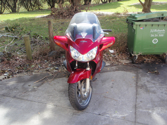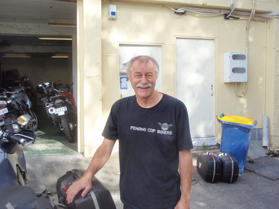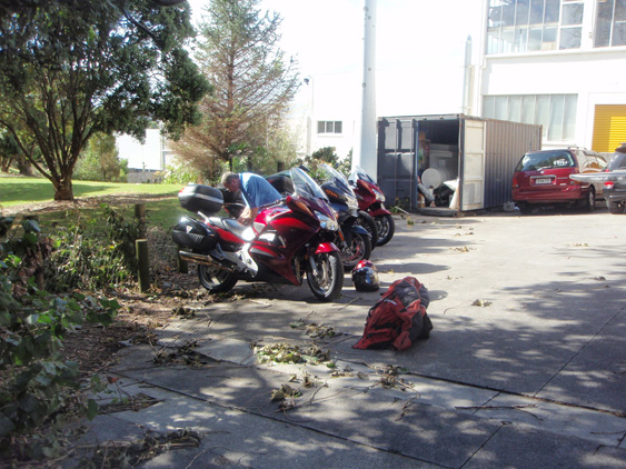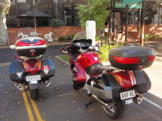 Out back sit the two ST1300s that will carry Alain and me on our journey. I notice on one of the bikes in the shop, there is a GPS cradle from a Rage. I ask John about it, and he says - "Yes, we use the Peaklifes and the Rages as our rental GPS systems. They work quite well for us." "Well, that's what I brought with me" I tell him. "Good units at a good price". |