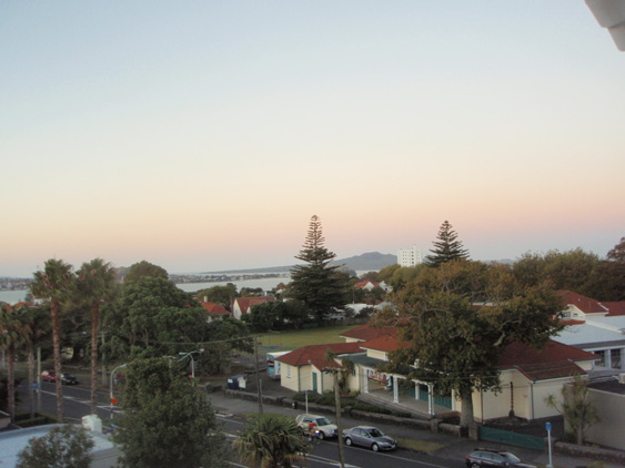 | With things all ready to go for tomorrow, I sit out on the balcony and enjoy watching the sun slowly go down over the city of Auckland. | ||||||