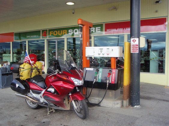 | Since gas was not available when we came in, we fuel up at the first spot we come to. Best I can tell, gasoline is between seven and eight dollars a gallon here, pretty consistent with other places in New Zealand. | ||