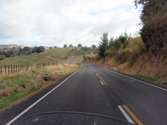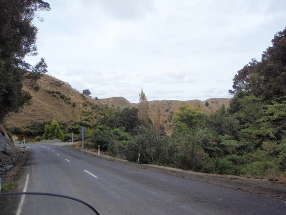 The Forgotten World Highway crosses three 'saddles' - the Strathmore Saddle, the Whangamomona Saddle and the Tahora Saddle. This is the Tahora Saddle as we climb toward the top. |