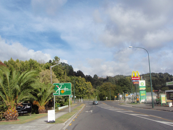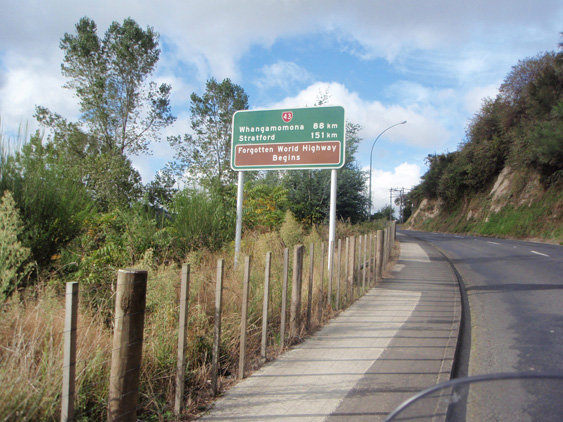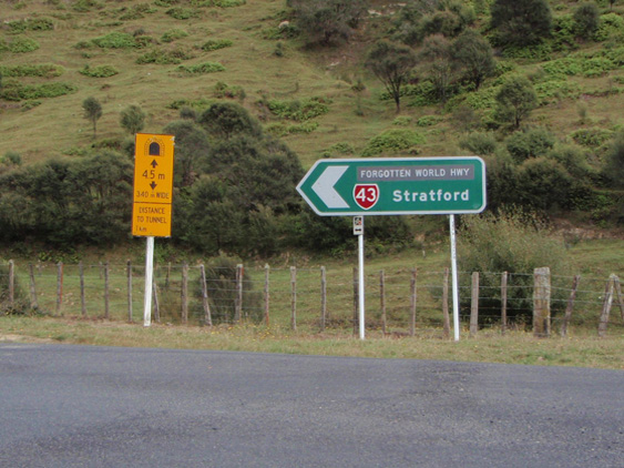 | Soon we reach the start of the Forgotten World Highway, home of the 'Capital of the Republic', the 'Hobbit Hole', and the Tangarakau Gorge that has walls almost two hundred feet high passed through via a gravel road. | ||