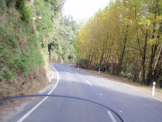 | The road just hugs the hillside which makes for a motorcyclist's delight. | ||