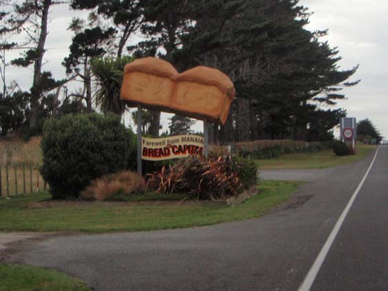 | brings us to the town of Manaia - 'the Bread Capital'. It also has a statue of George, a Jack Russell terrier that died protecting 5 local children from an attack by two pit bulls. | ||