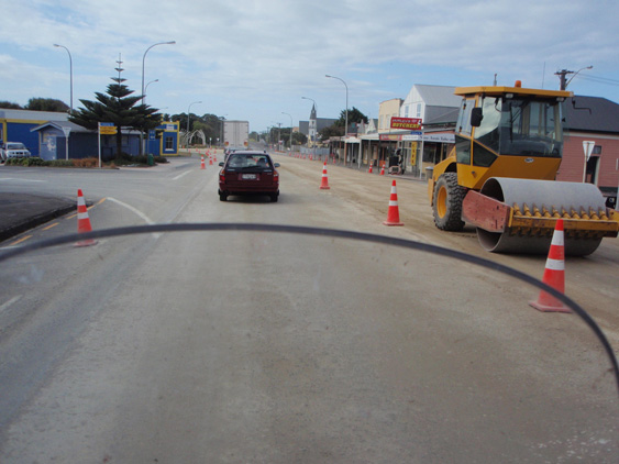 | Coming into the town of Patea, we encounter a little road construction but it does not slow us down much. | ||
