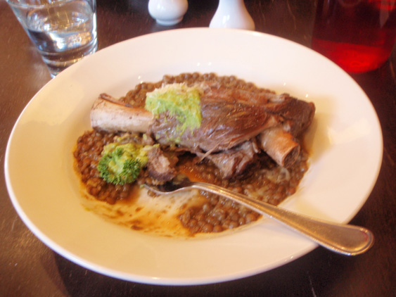 | The hotel also has a nice restaurant inside so we decide to take advantage of it. Since we are in prime lamb country, I order the Lamb Shank special. | ||