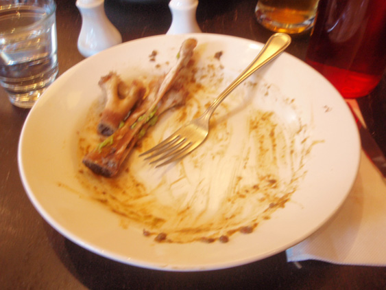 | Bo Peep, Mary and their followers might be disappointed in me, but I am not disappointed in the meal. The lamb is moist and tender and somehow evaporates off the plate before me - right down to the bone. Must be something in the ocean air I guess. | ||