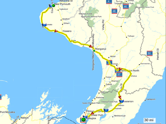 | It has frequently been closed in years pass due to landslides but much work has been done to deal with this problem. It's a great ride with lots of lazy sweepers and good pavement that meanders alongside the Manawatu River. | ||