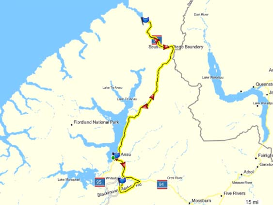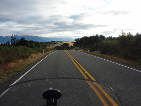 | We finish up as Liz has to go off to her work and Jeff has to get out early to deal with the sheep. And all Alain and I have to do is ride out to Milford Sound and enjoy a boat ride when we get there. Te Waipounamu has done all the 'arranging' so we just have to show up at the proper time. I decide to set up the camera for video for this ride before we pull out. (The video is over an hour long so I divided it into a second part.) | ||