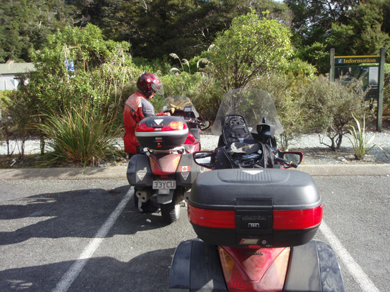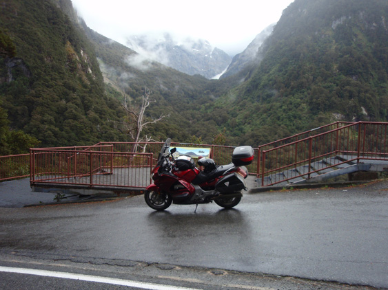 | We've been warned that gas is scarce on the way to Milford Sound, so this looks like as good a place as any. Fortunately, with the large tanks on the ST1300s, we will be great shape to get there and back. | ||