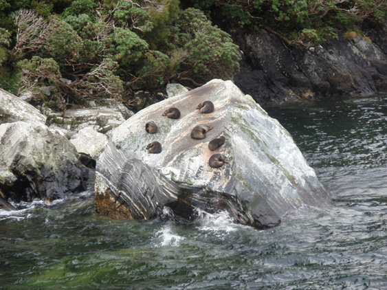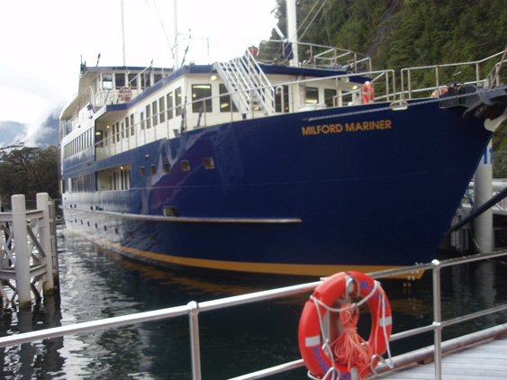 Our ship for the day is the Milford Mariner, a sturdy vessel that will carry us out of the sound and into the open ocean. We soon learn that Milford Sound is not 'technically' a sound, but is really a fjord. To put it properly - 'Milford Sound is incorrectly named, as a sound is in fact a large sea or ocean inlet larger than a bay, deeper than a bight, and wider than a fjord, while Milford Sound is formed by the actions of glaciers.' |