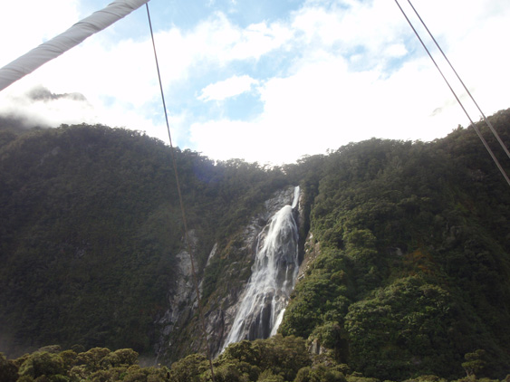 | Throughout the voyage, we pass several lovely waterfalls cascading down the sides of the sound. | ||
