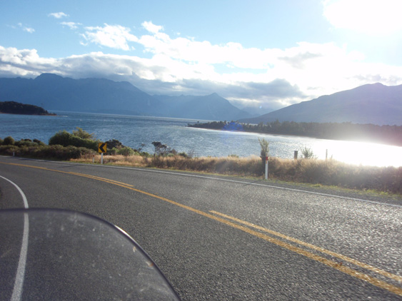 | As we near the Te Anau township, we get a glimpse of the lovely Lake Te Anau. | ||