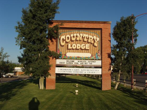 When I get around Provo, I leave I15 to take part of highway 89 to cut the corner off to I70. It'll be nice to be on some 2-lane at least for a while. Along the way, my face shield decides to come loose. A quick one-handed grab, and I stuff it inside my jacket and keep rolling. I generally ride with it up anyway, so it's really no big deal unless I hit heavy rain. I am congratulating myself on the time I'm making until I see something disturbing up ahead. It's a wreck on the 2-lane that's got both lanes blocked. Seems like there was a head-on and it's not a pretty sight with car parts scattered all over the road. At this point, I don't have many options since there's no turn around place and no roads to turn off on. When this sort of stuff happens, you can either get wound up in a tight knot, or just kick back, park the bike, and get off and stretch your legs a bit. Looks like it's gonna be a while, so I figure I might as well chill. After 30 minutes, the crews have enough of the debris cleared so I can proceed on my way. My heart aches for the folks involved because it's easy to tell as I go by that somebody is hurt really bad. Soon enough, I'm back on I70 and make a quick entrance intro Grand Junction. It's a good place for a gas stop and I decide to get some milk and a cake. The acid level in my stomach is up a bit, and that's usually a sign I've been drinking way too many diet cokes. It's a short run down my old friend Highway 50 to Montrose and I'm sure glad to see the city limit sign. My thinker is a little foggy, so when I pull up beside a car with it's window rolled down at the next traffic light, I ask them - "Do you know whereabouts the Country Lodge is around here?" The passenger says "Sure thing. Right down this road and hang a left. Just follow us." In my tired state, I am very thankful for the kindness of these strangers. I stick to them like a tight headband and follow them as they make the left turn. They motion me up beside them - "It's up ahead on the right. You can't miss it" they tell me. "Man, thanks a bunch. I really appreciate it!" Fortunately for me, there's a big sign out front so I see it long before I get there. |