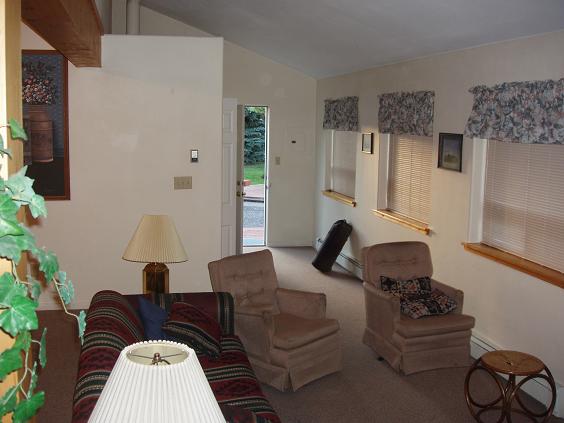I wheel it into the drive, go in and tell them who I am. The nice lady behind the counter tells me - "Two other guys have already checked in. They said to tell you they are across the street at Arbys." She's got labs running around, so I make friends with them really quickly. She directs me around to our cabin in back and tells me - "Be careful of the gravel. Some guys on bikes have a hard time with it." "Sure thing. I'll watch it" I tell her. The gravel is a bit thick but I motor on through it to a nice concrete parking pad they have just for parking motorcycles. I unload my stuff quickly into the cabin, which is really nice on the inside. |