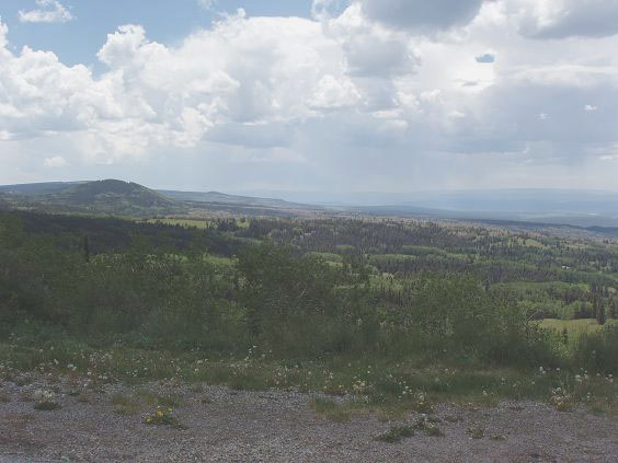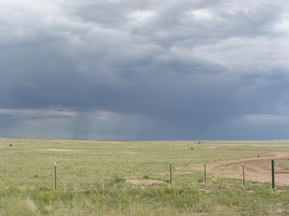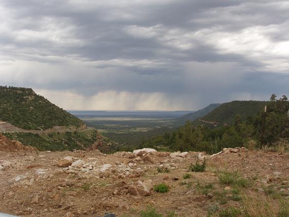 | Once I get on highway 64, it brings back memories of a prior ride when I took it all the way across New Mexico. But I don't like the looks of the dark clouds that are forming above my head. For all the world it looks like it's raining pretty hard where I'm headed. | ||