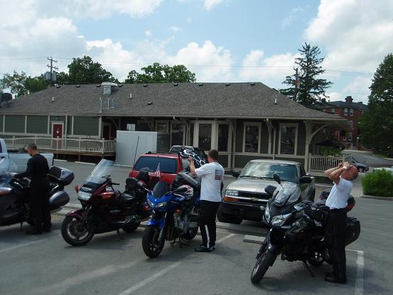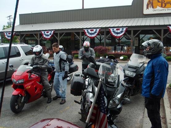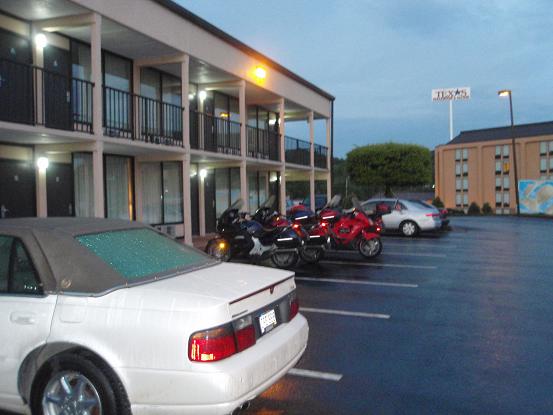 | When we finished dinner, we congregate outside to sort out what the plan is for tomorrow. Jason checks to see how many folks have GPS systems and we're about half and half. He decides to use the drop and sweep method that I have used many times and I help explain how it works. I also volunteer to be the 'sweep' or tailgunner which will be the first time I've had that position. It's departure from the Cracker Barrel parking lot in the morning and we'll be off for three days of great riding. Andy and I make our way back to our room and are out like dead men in short order. | ||