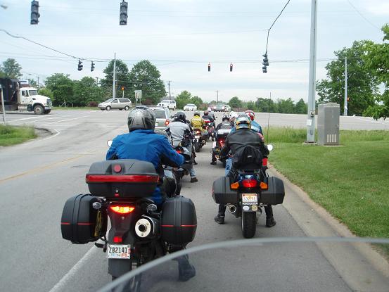 Once we finish, we meet up with the rest of the group in the parking lot. We remind them about the drop and sweep we will be using and to be sure and stay in the marking position until I come up. I tell them - "I'm the tailgunner. When I come up behind you if you are a breadcrumb, I'll put on my 4-way flashers and beep the Stebel. You can just pull in front of me." Most of the riders have traveled with me using this system before so I don't expect a lot of problems. And it will be really nice to just set back and relax instead of being in the lead and all that entails. |