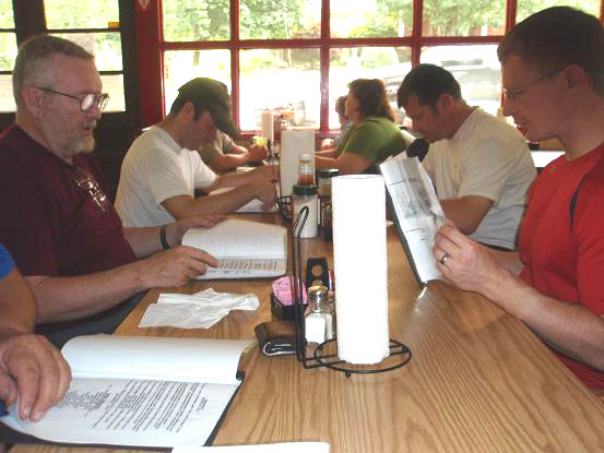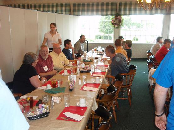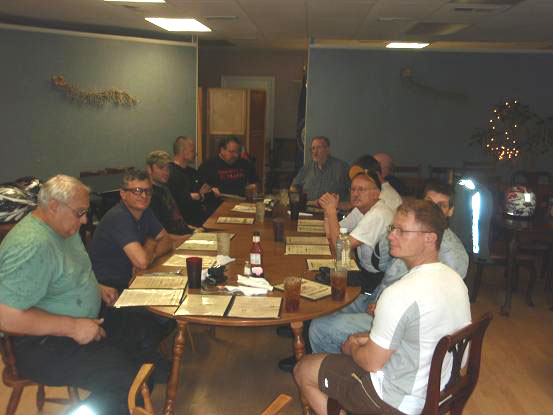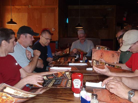 | Jason has got the folks at Cracker Barrel to put some tables together, but we don't know how many are going to show up. Some folks take advantage of the fixings at their motels, but ours was pretty foo-foo and nothing I'd want to ride on very far. Joe is there also, so we get our orders in and the food comes pretty quickly for a Cracker Barrel. | ||