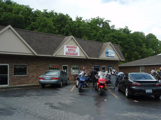 In Owningsville, we stop at the Kountry Kettle for a down home cooked lunch. They decide to move us over to separate section from their regular customers. I understand and tell the lady - "I don't blame you - I wouldn't want my regular customers run off by motorcycle trash either." |
