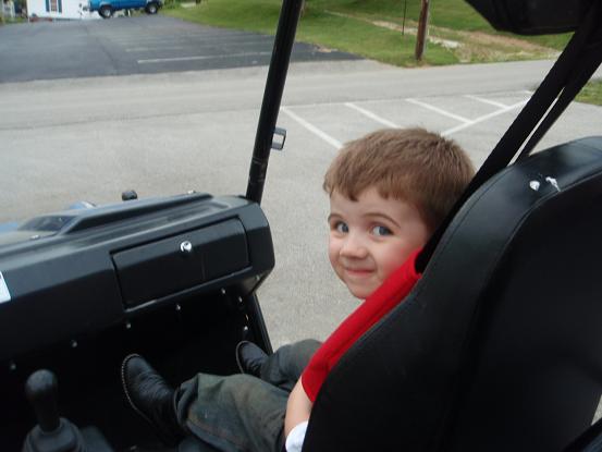 Then Jason offers a free ride in the four wheeler to the local mountain overlook. It seems like nobody is willing so I tell him - "Let's roll baby. I'm a game chicken!" I tell him. Then I look at Ron, and say - "Come on big guy, we need the extra ballast." Clay, Jason's oldest boy wants to go, so he gets to ride shotgun with Ron and me in the back. I tell Jason - "You ought get some mighty fine traction with us two slabs of meat here in the back." And he does. |