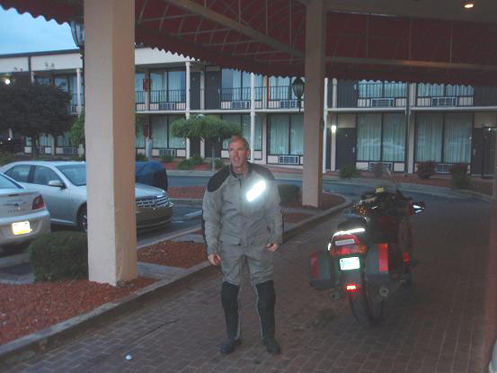 After we have done proper justice to the food set before us, we wander back over to the motel. I see an ST1100 pull in with Vermont plates and the rider has a gray STich on. It has to be my friend, Dan Baynes, from up yonder in the north land. I give him a hug and tell him - "We waited supper for you like one hog waits on another." We both have a good laugh and talk about our recent visit in Lincoln, New Hampshire where we had supper together. Nothing like sharing good memories with old friends. |