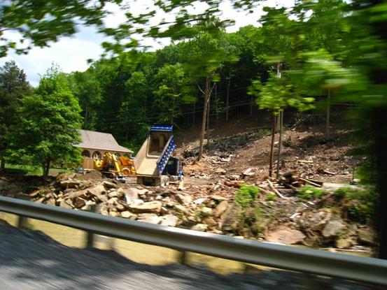 | Working our way down the mountain into Gilbert, the damage done by recent flooding is startling. Right now the little creek beside the road looks pretty harmless. | ||