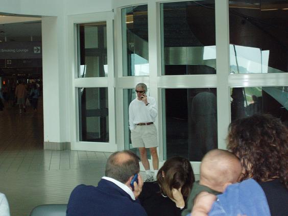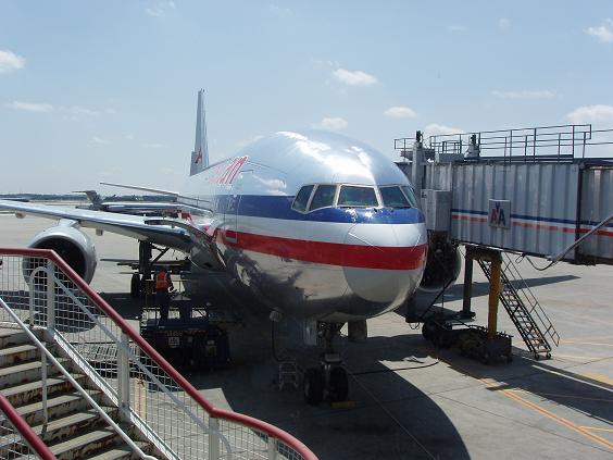 Being a veteran of many flights and many airports from my previous job, I know the drill to Chicago. My biggest problem with flying is the size of the seats. If I press all the way back in most airline seats, I have about ½ inch clearance between my knee caps and the back of the seat in front of me. So if Mr. Smith in front of me puts his seat back, he gets a nice set of knees in his kidneys cause there's no other place for them to go. If the comfort controls are in the sides of the arms, I'm so wide, I can't use them. I guess I'm just not the average size American that airlines use in designing seats! I look out the window and see our plane sitting at the gate and I already know it's gonna be tight quarters for me. |