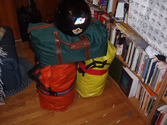 I figure the weather will be similar to what we encountered in Canada and New England in 2001, so I've got warm weather stuff and my heated stuff. As I always say - , “Better to have something and not need it, than to need it and not have it!” Guy is busy sorting out his gear and I am afraid he may be jettisoning some stuff he will need later on. But this ain't his first rodeo, so I leave it to him. We have differing philosophies of what we carry but that's why they make chocolate and vanilla ice cream – people are different. The time comes finally, and we load up our gear into my old brown pickup truck. The guys that worked for me at my previous job said it was the only truck around that had its own zip code it was so long. |