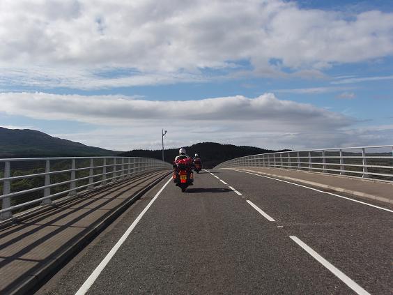 | Dave leads us on a loop of the island before we join back up with A87 which will take us to Invergarry and beyond. About 10 miles or so from the Island we come to another famous Scottish castle, the Eilean Donan Castle. It was originally inhabited around the sixth century, but has gone through many reincarnations and reconstructions. After laying in ruins for almost 200 years, it was restored to it's present form  in 1911.  | ||