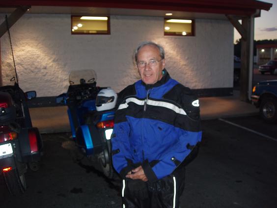 As we quietly motor along the gravel roads out to the blacktop, I notice many of the farmers are already up and stirring, getting ready for another hard day in the fields. In single file precision, we make our way to the only place open for breakfast at this time of morning - a local truck stop on highway 400. I've always found that truck stop food can be very good - especially breakfast - and this place does breakfast right. Dennis and I place our orders and pick a table in the almost deserted eating area. "Well, thanks again for putting me up and taking care of me" I tell Dennis. "The pleasure is all mine" he responds. He's a true gentleman and I know that he means it. "By the way, you'll never guess what today is" I tell him. "What?" "My fifty-fifth birthday. Do I look any older?" I quiz him. "Well, not that I can tell" he replies. Then they make a motion that our breakfast is ready so we go get and commence to enjoy it. "You know Dennis, you ought to go see C.B. down in Texas. You and him would certainly enjoy each other's company." They are both way up on my favorite person lists and a real joy to be around. "I'll just have to do that" he responds and I know I've added another place to his riding agenda. We finish up and head for the bikes. "Well, let me test my camera one more time and get your picture" I tell him. |