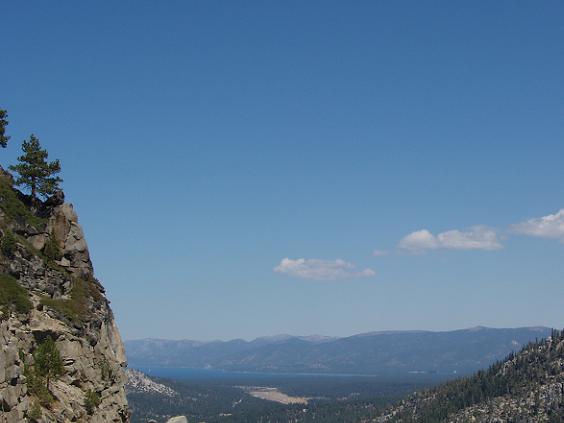 When she drops the check off, I tell her "You won't tell on me if I don't clean my plate, will you?" She just laughs and says "Glad you enjoyed it." My clothes are fitting a bit tighter, but I know I can make it the rest of day off of that meal. Before long, I'm working my way past the western shore of Lake Tahoe. I can only imagine what property must cost just to have a good view of the beautiful lake and mountains, much less be close to the water. I never thought growing up I'd see people willing to pay extra for a piece of property advertised 'with a view'. But it seems to have become a way of life in most places. |