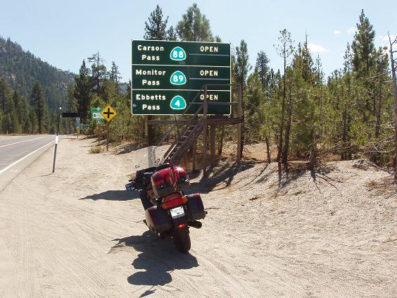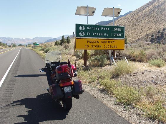 | It is such a subtle pass, that I almost missed it. Glad to have solved that mystery, I head for my two remaining passes - Sonora and Tioga. I had been at Sonora following my old friend, Dennis Ryan, Bamarider and some more friends after CanyonSToc. I remember it being a pretty technical road on the way up. When I get on highway 395, I once again see a much welcomed sign. | ||