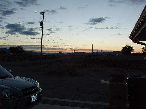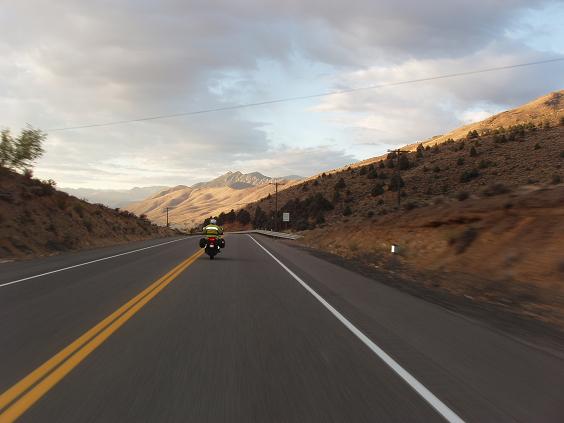 | We are up and about early this morning and as we walk out to the garage, Don asks me if there's anything I need for my bike. "Well, I did lose a bolt out of the fender somewhere in Kansas" I tell him. "Let me check my ST stuff and see what I've got." Sure enough, he comes up with the correct fastener that I need - which is pretty amazing considering all of the different types of fasteners on a ST1100. As I am installing the fastener, I check my tire pressures. As I rotate the front wheel, I notice it is slightly bent - a result of that bump in the road in Kansas. But it seems to be holding the air okay, so I figure it'll get me back to Tennessee. Not many other options at this point but to ride on and take my chances. You can dwell on stuff like that or just move on. Since I've got a lot more riding to do, I just I file the information away in my mental 'review file'. When we roll the bikes outside, the coldness of the desert morning is quite a wake-up. It's about 43 degrees F and I'm glad I have my Gerbing heated gear on. The sun is just starting to peak above the horizon with the makings of another beautiful day. | ||