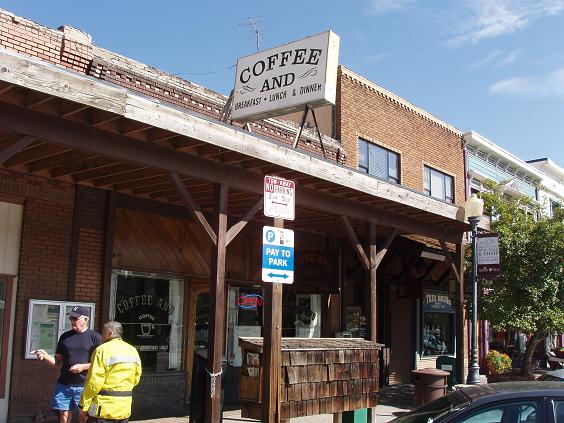 | I follow Don as we wind around the lake shore and up and over a high ridge into Truckee. It's nice to ride with someone that is familiar with the area and knows the good back roads off the beaten path. Before long, we pull up to the breakfast spot that he had told me about yesterday. | ||