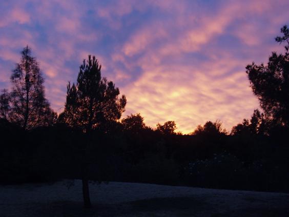 | The excitement of the day ahead of me pops my eyes open at 4 AM. I get up and get a shower and am ready to go. The sunrise over the treetops at the motel is a gorgeous opening act to the incredible scenery I will take in today. | ||