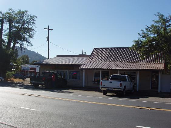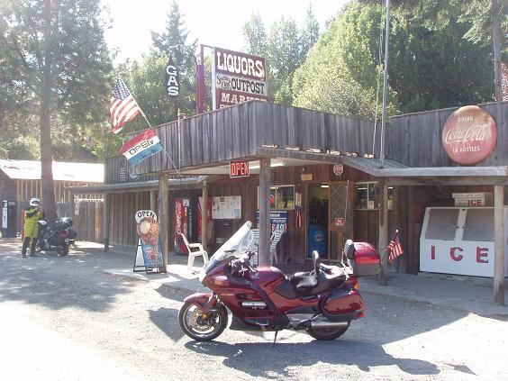 | Rich and V.J. are up soon and we decide that we'll just catch breakfast somewhere along the way that looks interesting. We slowly ease our way out of Redding on highway 299, headed for highway 3, with the intent of following highway 36 to the coast. We had been warned that highway 36 has some construction on it south of Redding, so we pick this route to avoid it. And it turns out to be a great choice - various elevation changes, great sweepers, then tighter stuff - just the way to start out the day. We swap the lead on and off as the mood strikes us, just three boys playing with their ST toys. As we come down off the mountains into Hayfork, I see a restaurant that catches my eye - well worn drive, work trucks parked in front, and the smell of pig meat and hen fruit cooking. I pull off and motion V.J. and Rich to come on in when they catch up. | ||