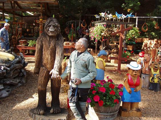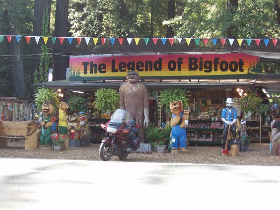 | Our intentions are to make it all the way to San Francisco tonight on highway 1, which is another part of my goal on this trip. Rich, who is very familiar with the route says "Well, we are running a bit short on time and part of the Avenue south has been washed out due to recent storms. Why don't we head back to 101 since it would be a bit quicker?" We all figure that's probably a good thing, so at the next connection we're back on the main highway. Rich has another place he wants to stop in Garberville to get a few things for his house, so we gladly oblige him. It is the tourist center for Sasquatch, who is more affectionately known as Bigfoot. | ||