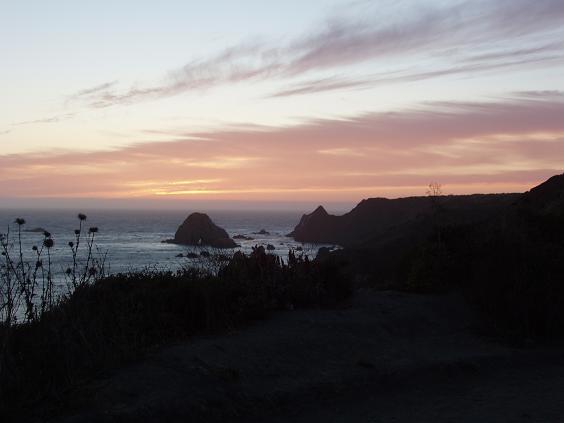 | We travel as quickly as we can down highway 1, but we just can't seem to extend the daylight. The old sun continues to drop as we make our way southward toward San Francisco. | ||