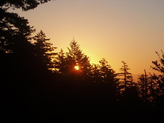 I'm up again at the crack of dawn, so I quietly slip barefooted into the front room and take me a spot. The sunrise is spectacular as the myriad of colors etch out the trees against the horizon. I soak up a last good look before I leave this peaceful place for whatever lies ahead on the road today. |