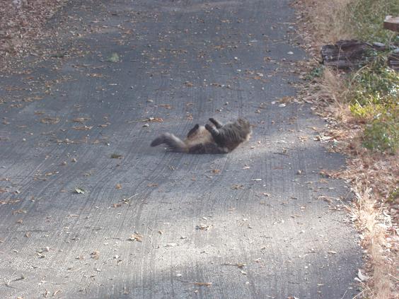 Today V.J. has to head back to work and I'm headed back to finish up highway 1. It will be my last day of relaxing riding before I hit the slab to the Holler. V.J. wants us to share breakfast at Alice's Restaurant just down the road a little bit from his house which is fine by me. From the restaurant, it will be a run down the hill on Tunitas Creek Road that T-bones into highway 1 near Half Moon Bay on the ocean. A left turn then I just follow the coast to San Luis Obispo – not hard to remember. Soon V.J. and Mo are up and stirring about getting ready for the day. Miss Mo is the first one ready to go and she tells me - “Uncle Phil, any time you are out here you must stay with us. You don't even have to call, just come knock on the door.” I give her a big hug and thank her for their hospitality and she's off the face the work day. Then V.J. says “I need to feed Shirley and then we will be off.” Shirley obviously knows the routine quite well and patiently waits for the food – well patiently for cat I reckon. After she eats a bit, she follows us back up the drive a ways. I bid her a farewell – “Miss Shirley, you be good if you can” I tell her. She rolls on the ground as if she is having a good laugh at that statement. |