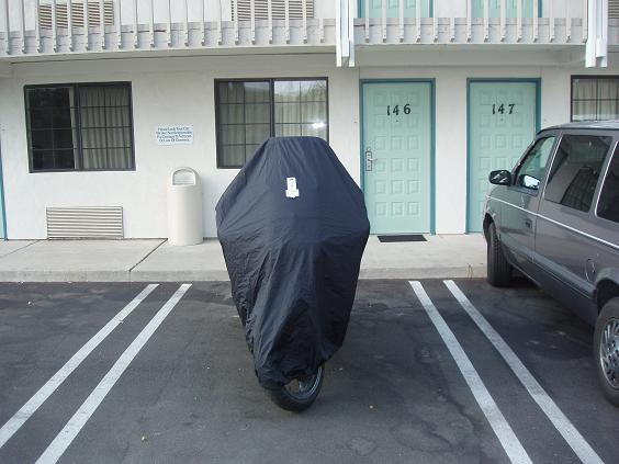 As I get into SLO, Highway 1 rejoins the industrial strength Highway 101 and once again I am swept up in fast moving traffic on a 4-lane. Fortunately it's less than 4 miles and I'm at the exit for the Motel 6 that Guy has recommended. There's also Margie's Diner just up the street in close walking distance, and there's gas on the way out. Those are the three things I like to have at stop - gas, food, and sleeping quarters - so this will work just fine. As I check in, the clerk asks me where I'm from. "Well I'm from Tennessee and reckon I'm headed back that way tomorrow. I thought I'd just take highway 58 through Bakersfield on to I40." And once again a motel clerk gives me the totally amazed look that I have ridden a motorcycle this far and then plan to be back in Tennessee in a few short days. "Oh no, you don't won't to take 58 - it's really crooked" he advises me. I break out in a big grin as I tell him "Well, that'll be just fine since I'm on a motorcycle!" "Oh, yeah - I guess that would be nice on a bike I guess" he adds. He gives me a nice room in the back that I can park the SweetTreat in front of. So I pull her around, unload what I need and put her to bed for the evening. |