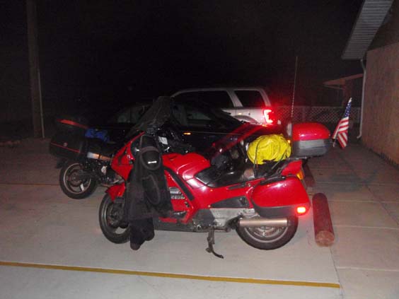 | Since I'm down to only one headlight bulb on highbeam, Dave has graciously consented to take the point position and watch for the wildlife. Andy will bring up the rear, so hopefully between the two of them I'll have enough extra light for a safety margin. So I do my last room check and soon we are after it. | ||