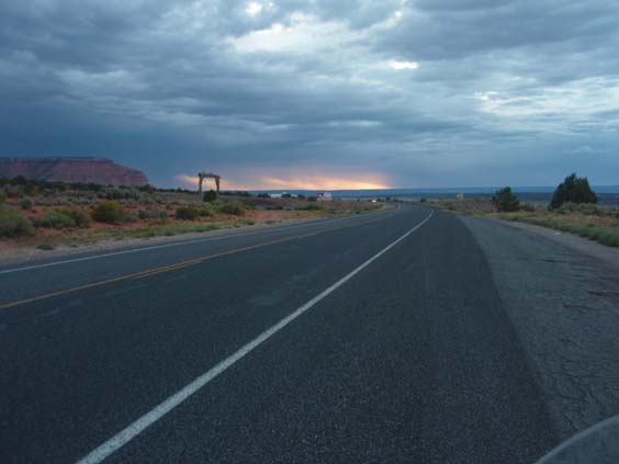 | But my joy is short lived, as that infernal cloud has moved across the highway and is dangling its threatening tenacles toward us. | ||