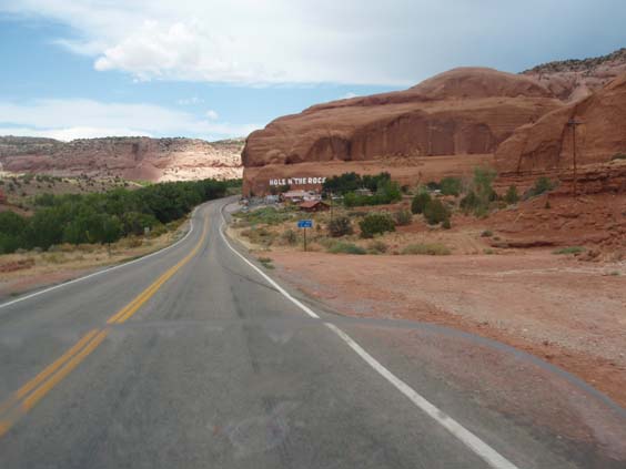 | As we approach Moab proper, we come the almost world famous Hole in the Rock. It is a 5,000 square foot home carved out of the sandstone. Since the original owners passed away, it is now a gift shop and tourist attraction. | ||