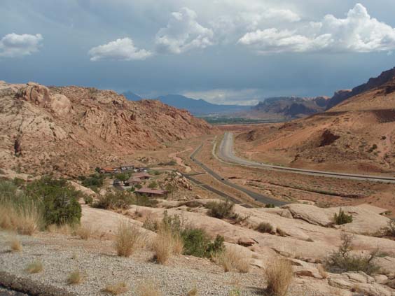 | It's a pretty steep climb into the park proper but it provides a lovely view back down the valley looking toward Moab. | ||
