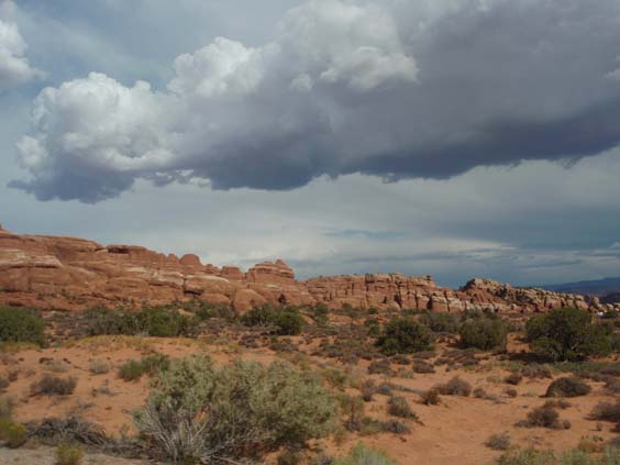 | But the clouds are not looking too friendly and this is not exactly a good place to be if a lightning storm comes up suddenly. So we make our way back out the main entrance carefully and mindful of the speed limits, since the park is heavily patrolled. | ||