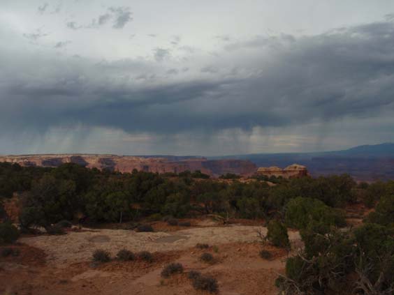 | The faster we go, the darker the clouds get and the lightning starts to strike the ground. And in the midst of this, I realize that I have made a tactical error - my fuel is much lower than I would like for the long journey back to Moab. | ||