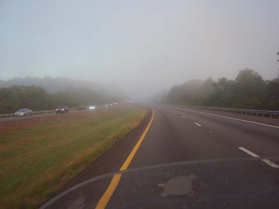 | As I hit I40, my companion for the day, I run into some fog where it crosses the Harpeth River. The coolness feels good and I know I will be wishing I had some more of it long about high noon. | |||||
