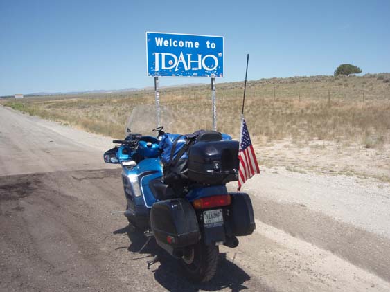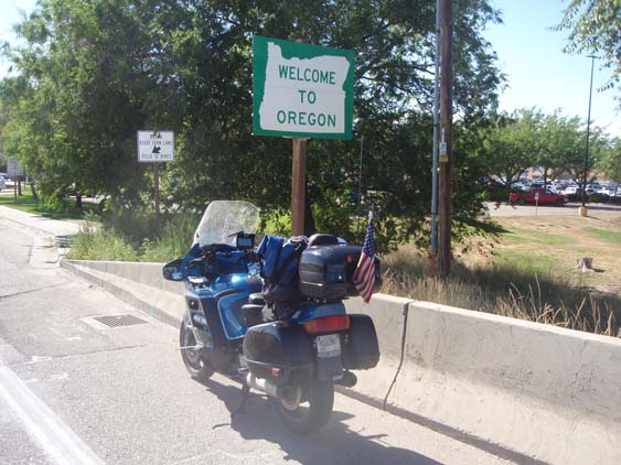 | This too will be another grind it out day to get to Oregon and the ride that I am really looking forward to doing. I got in so late last night that I sleep in a little this morning knowing all there is an Idaho state line sign and on the other end is a motel room and maybe an Oregon state line sign. The sun beats me up this morning but not by much as I get on with the getting on. | ||